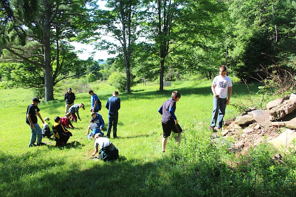 This year the artist led Collaborative Portraits in Nature, a special site-specific workshop with a local school community. We welcomed Bill Parker, a 6th grade science teacher from South Kortright Central School and his energetic class of 23 students, Pat Norton-White, the school’s Superintendent, and Nadia Friedler, a Clark University student who brought a journaling component to the day’s activities.