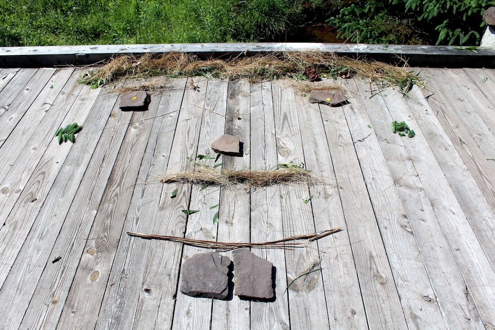Challenge #1: What Can You Find? Down by the original homestead site and in nearby woods, kids collected stones, leaves, twigs, flowers, grasses, and other natural objects with which to craft their own personal portrait.